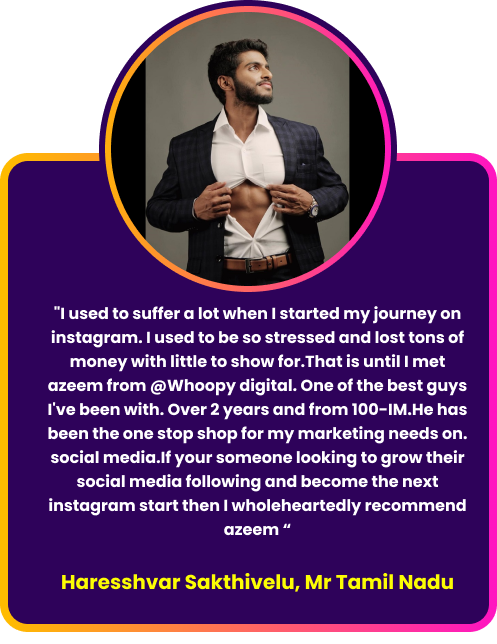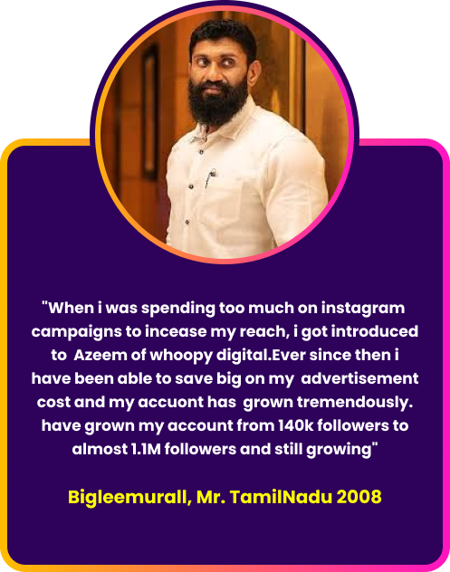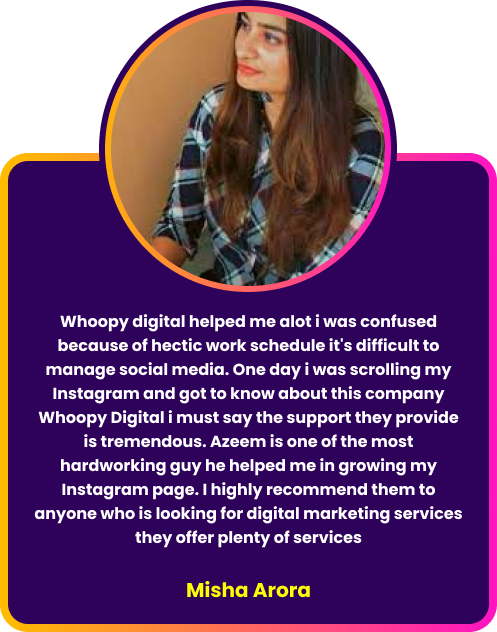 Whoopy digital have the zeal to make your business into well known brand , we are creative digital media organisation that unifies in generating Leads for business, Social Media Management , Influencer Marketing Buliding website and Moblie app under one roof. Framed by Azeem Ahmed, we are an combo of young creators who are expertize in all digital things..